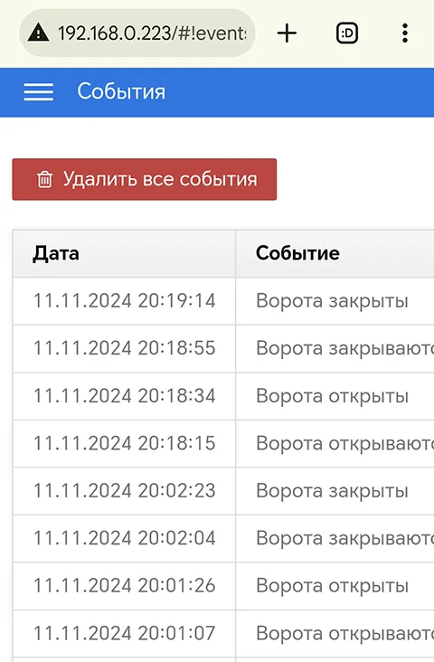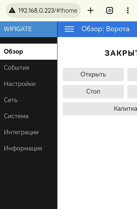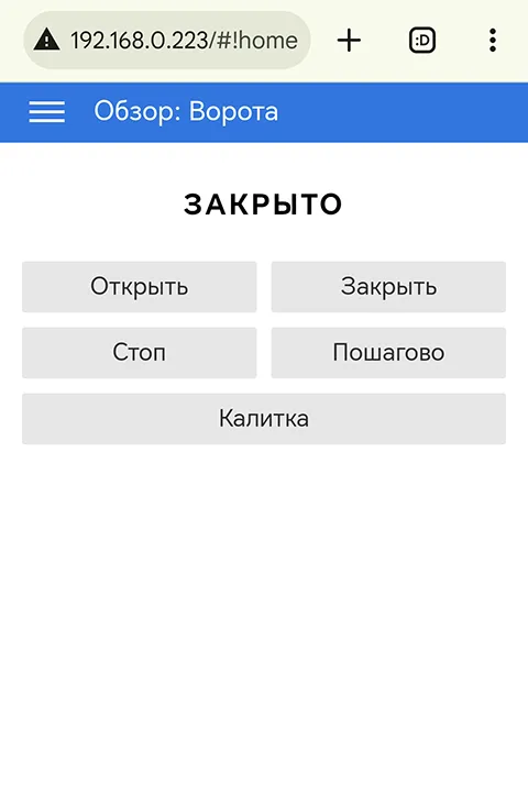Контроллер обладает собственным веб-интерфейсом. Это значит, что даже если у вас нет доступа к интернету, вы все равно сможете управлять воротами, находясь в пределах своей локальной сети или подключившись к контроллеру напрямую.