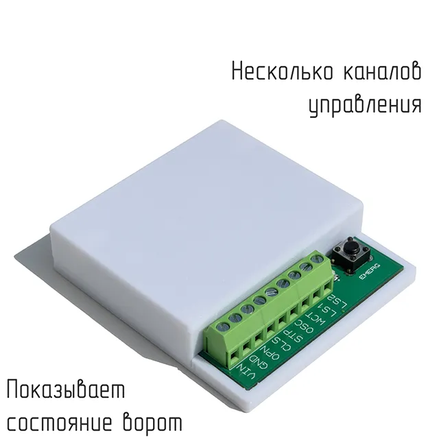 Контроллер работает с автоматикой для ворот, на плате которой имеется контактная группа нормально разомкнутых контактов для подключения внешних кнопок управления с замыканием на общую землю, и поддерживает такие операции как: открытие, закрытие, остановка, режим одной кнопки (открыть/стоп/закрыть) и режим калитки. При использовании дополнительной схемы согласования возможна работа с автоматикой, у которой управляющие контакты замыкаются на питание. Отслеживание положения ворот осуществляется через подключение к разъемам концевых выключателей на плате привода, при этом поддерживаются как нормально замкнутые, так и нормально разомкнутые контакты.